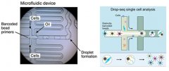 單細胞的高通量微液滴測序Drop-seq技術是可分析數千個單細胞的快速應用方法,可將各細胞包裹在納升級微滴中,進行RNA雜交生成mRNA轉錄物,進行后續的測序分析。